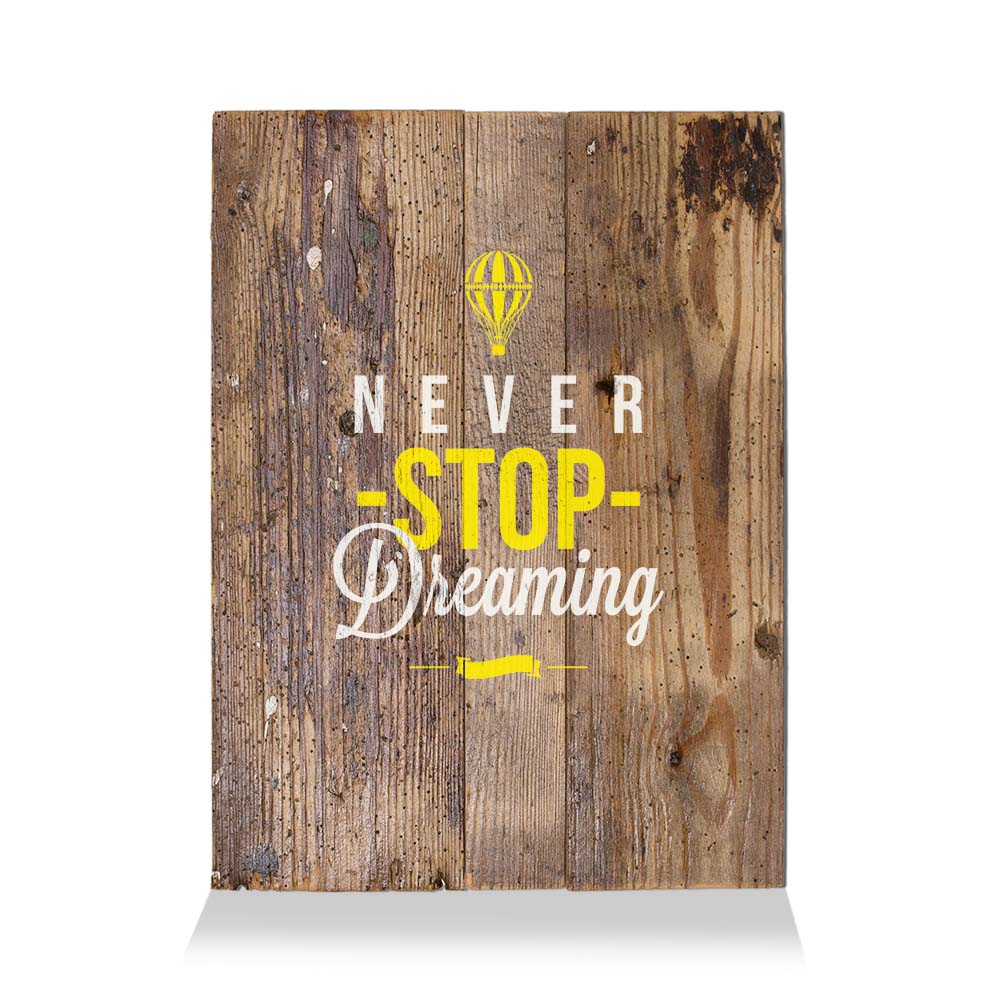 LumberPrint Holzdruck Deko Wandbild NEVER stop dreaming Wise Words