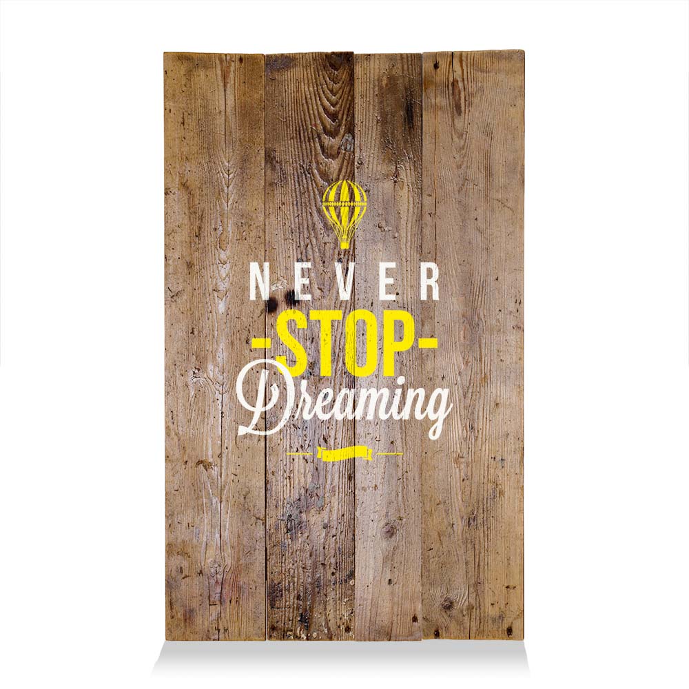 LumberPrint Holzdruck Deko Wandbild NEVER stop dreaming Wise Words